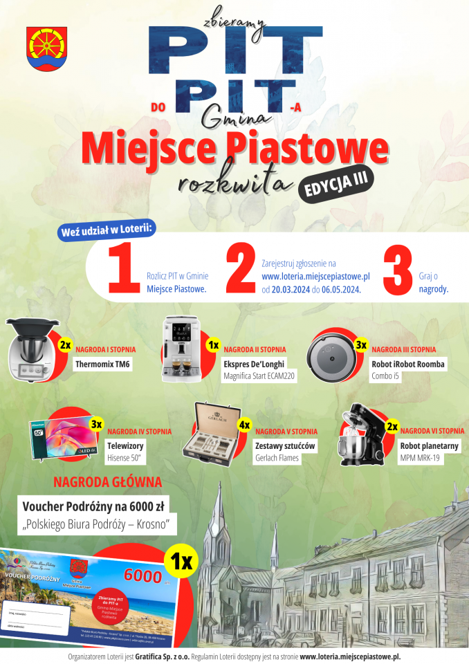 Już od dziś (20.03) można zarejestrować swoje zgłoszenie w III edycji loterii „Zbieramy PIT do PIT-a – Gmina Miejsce Piastowe rozkwita”